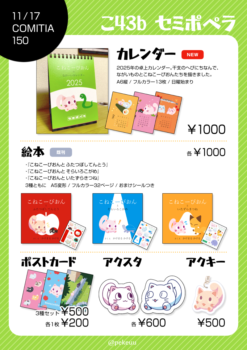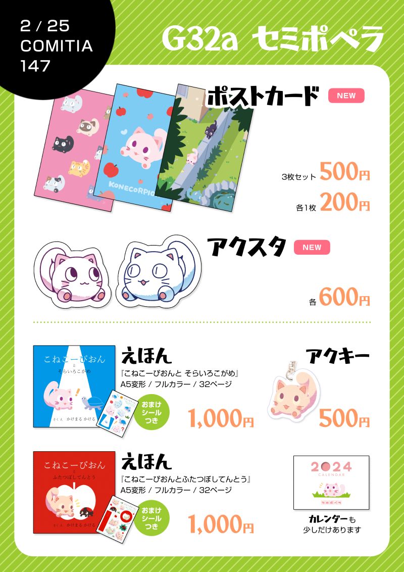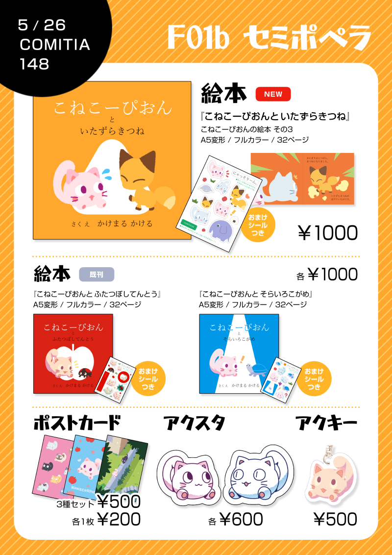 COMITIAで頒布したこねこーぴおんの絵本やグッズなどを通販中です。